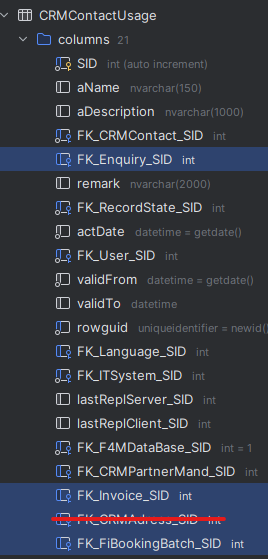 Liste der CMRContactUsages anzeigen (where FK_CRMContact_SID; aName vom verlinkten Objekt) mit Links.