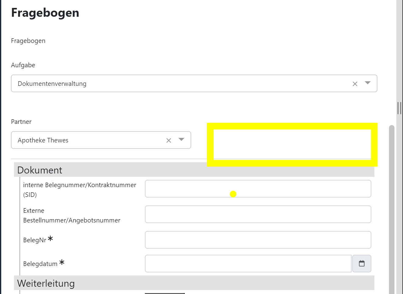 in der Workflowbearbeitung \"Dokumentenbearbeitung\" direkt mit einen Kontrakt verknüpfen können. Hierzu soll neben dem Feld Partner ein \"Kontrakt verknüpfen\" Button eingefügt werden.