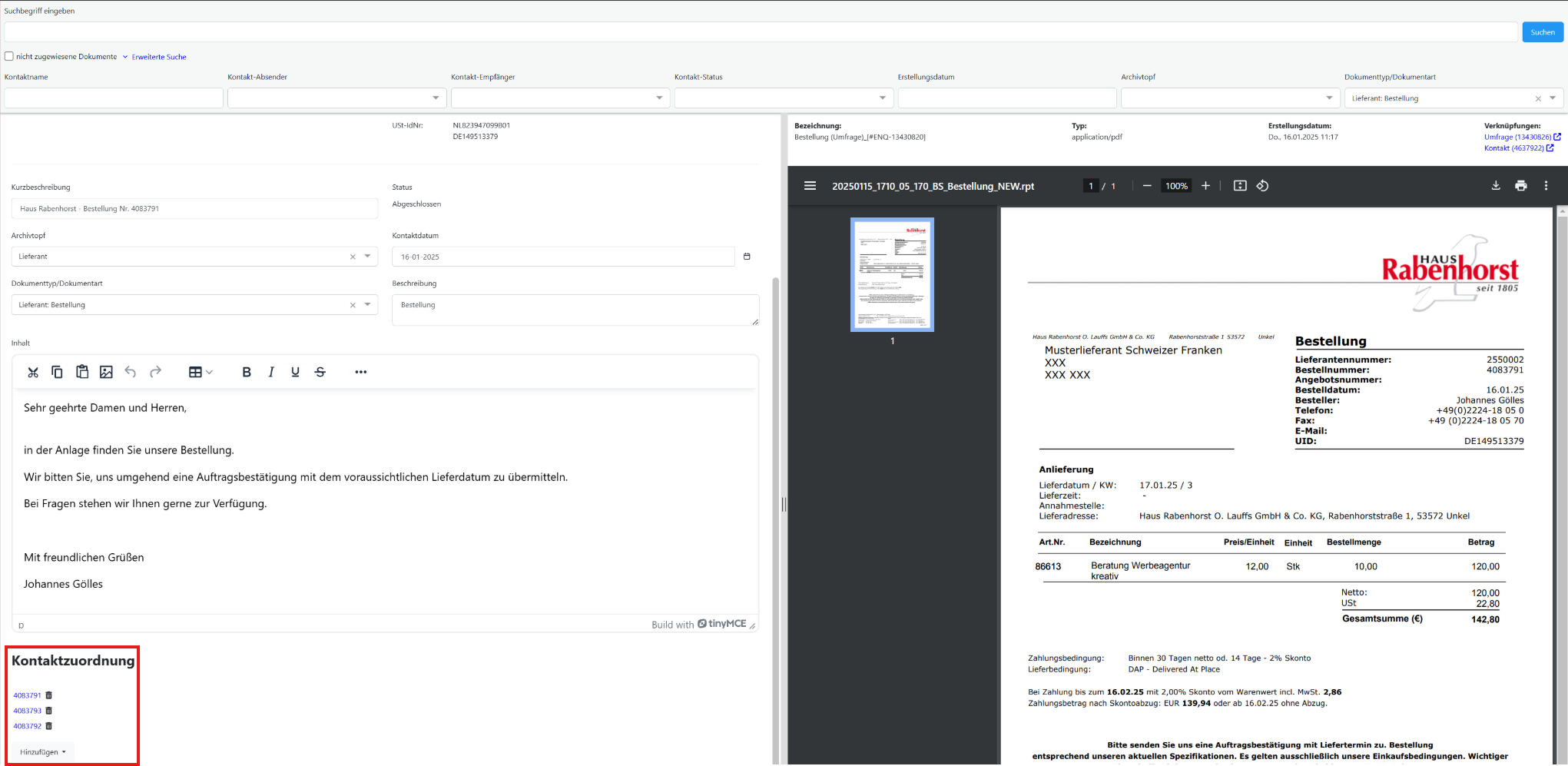Kontakt 4637922 aus Testfall von Story 713250 geöffnet