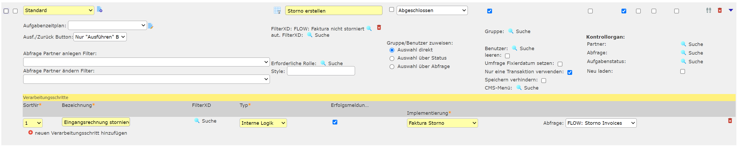 Es ist bereits möglich eine Stornierung über einen Ablauffolge durchzuführen. Zusätzlich gibt es jetzt die Option, dass nur der Batch angelegt wird und nicht automatisch storniert wird, da das Fakturadatum angepasst werden muss. Der Storno Batch wird allerdings automatisch geöffnet werden.