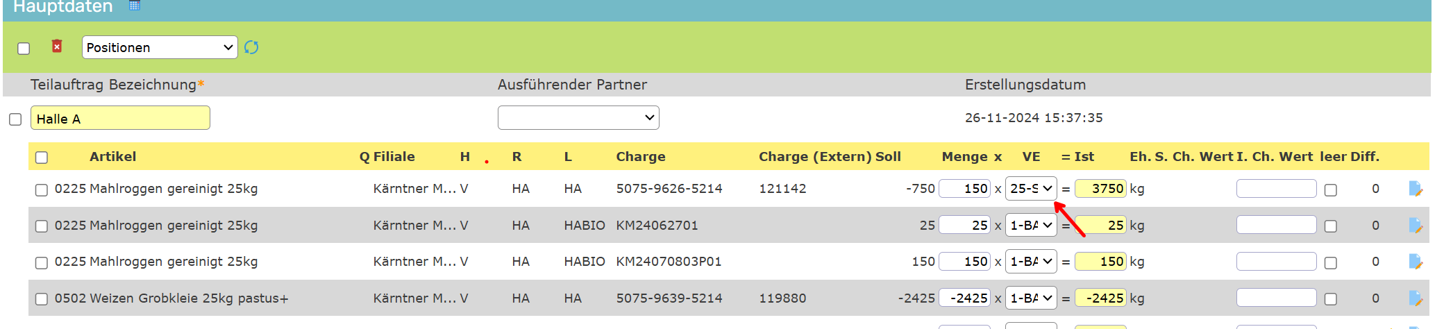 Standard Verpackungseinheit in der Inventur vorschlagen