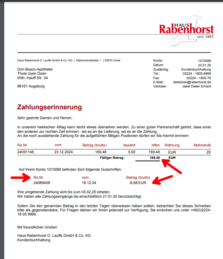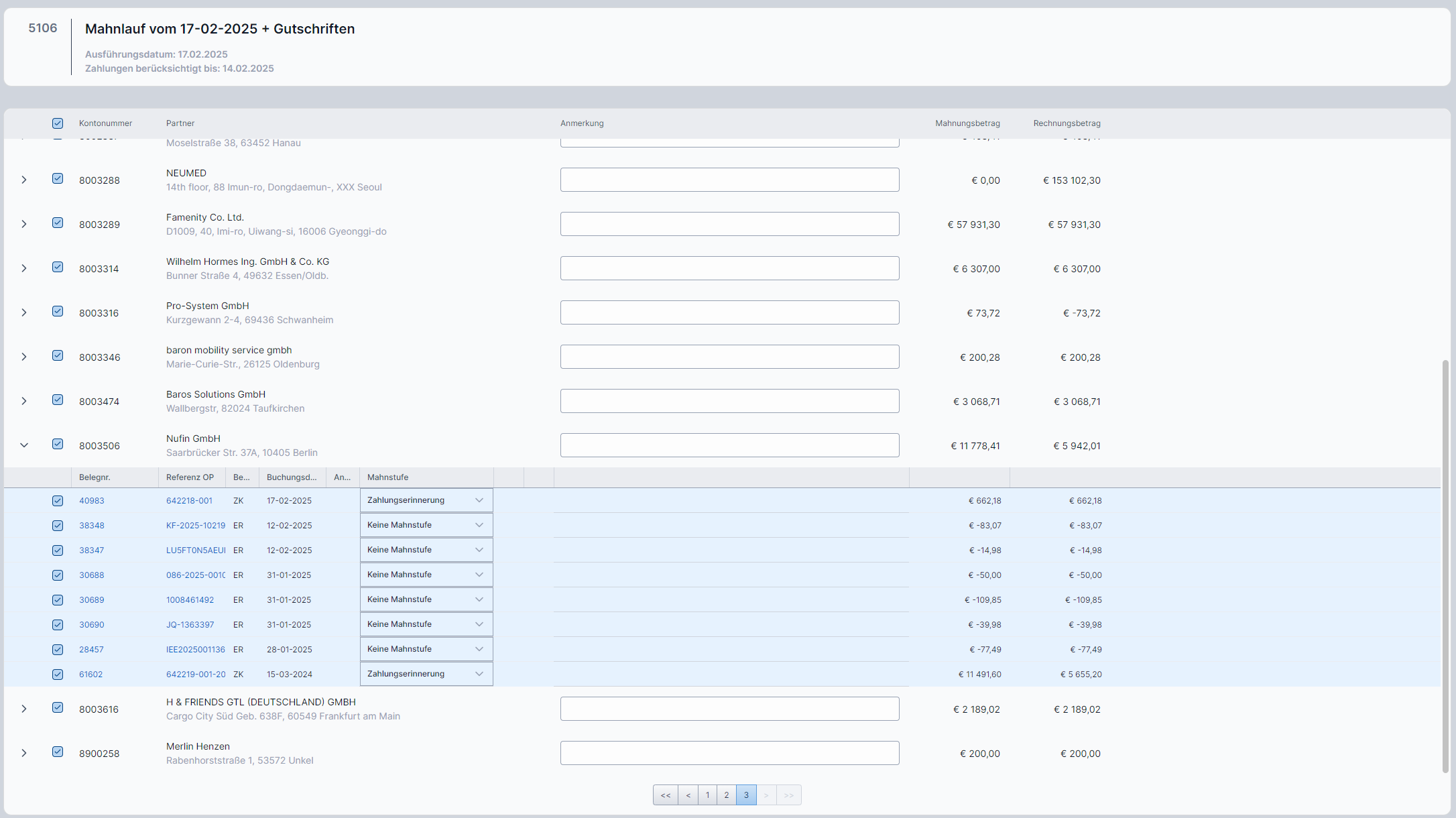 Bestehenden Mahnlauf vom 17-02-2025 gelöscht und neu erstellt (mit Gutschriften).