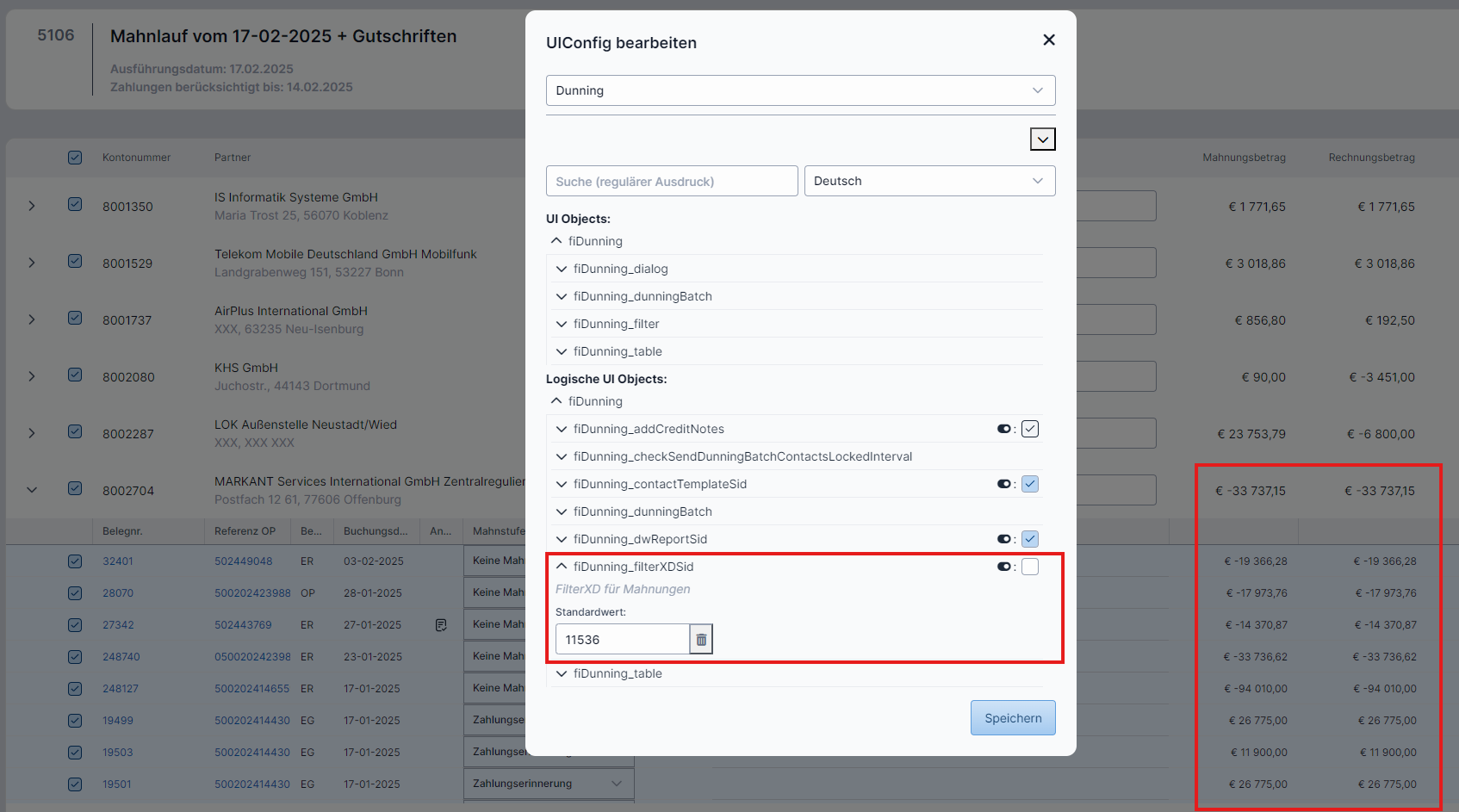 Mir ist aufgefallen dass auch Mahnungen mit negativen Beträgen erstellt werden, liegt daran dass der FilterXD 11536 deaktiviert ist.