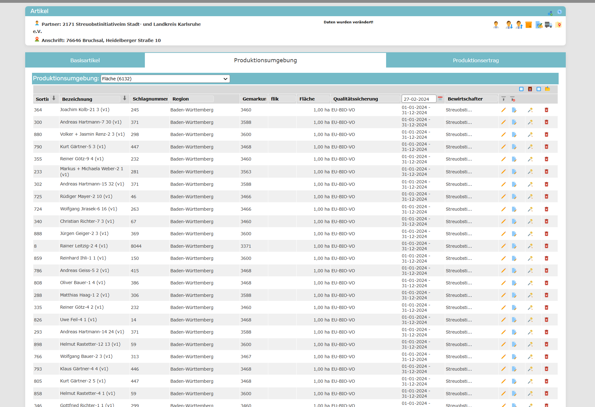 Zusätzlich wäre es nötig, nach der Schlagnummer (ProdEnv.code) sortieren zu können. Am Besten, dass man das als automatische sortierung einstellen kann wenn möglich.