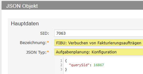 3. JSONObject anlegen mit Typ \"Aufgabenplanung: Konfiguration\"