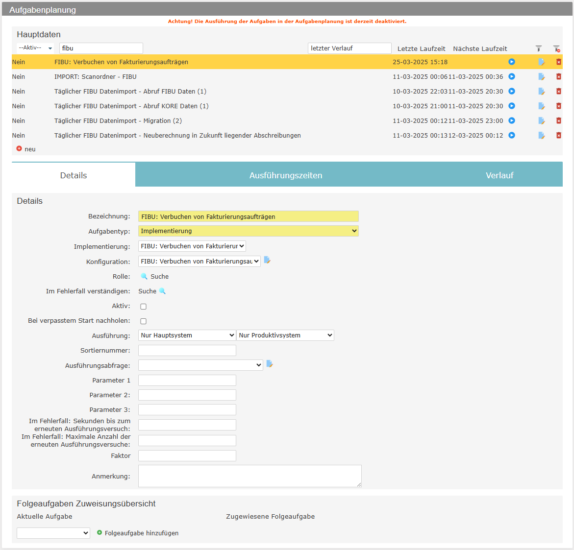 Testsystem - Aufgabenplanung // Nachträgliche Verbuchung aller Fakturierungsaufträge