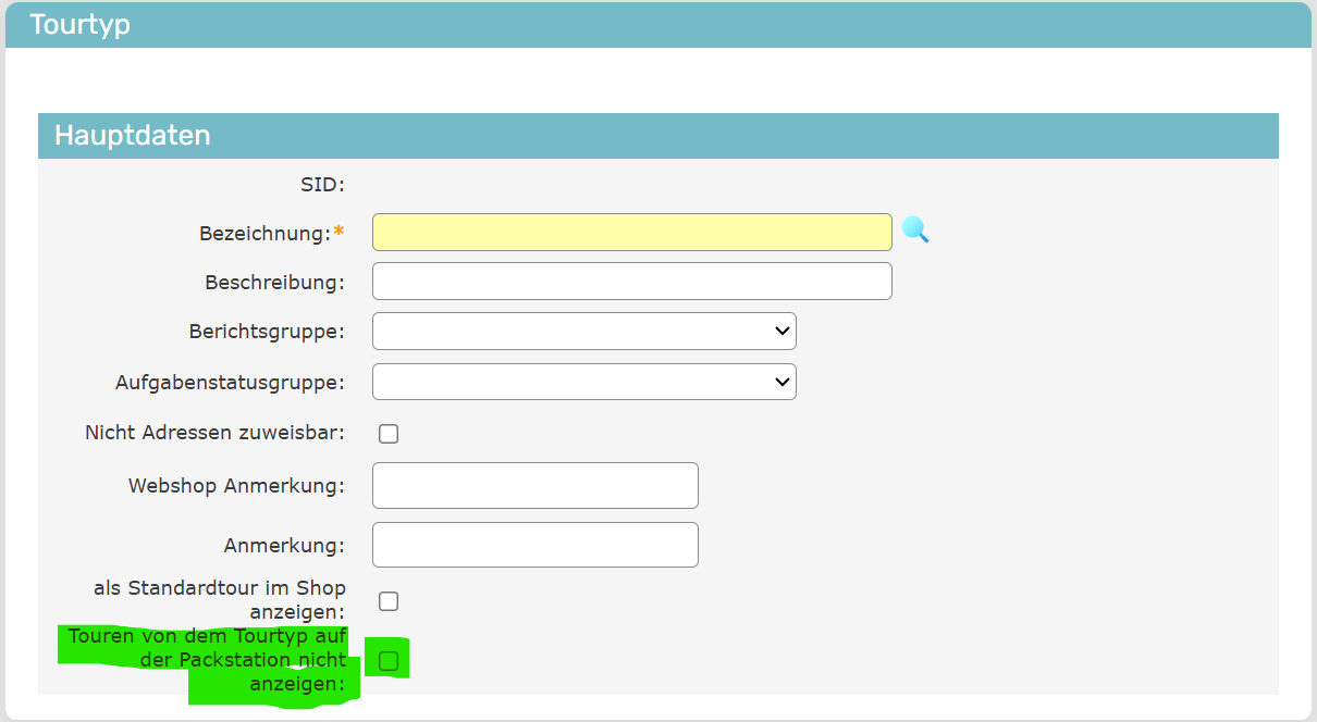 Ausblenden von Touren an Packstation