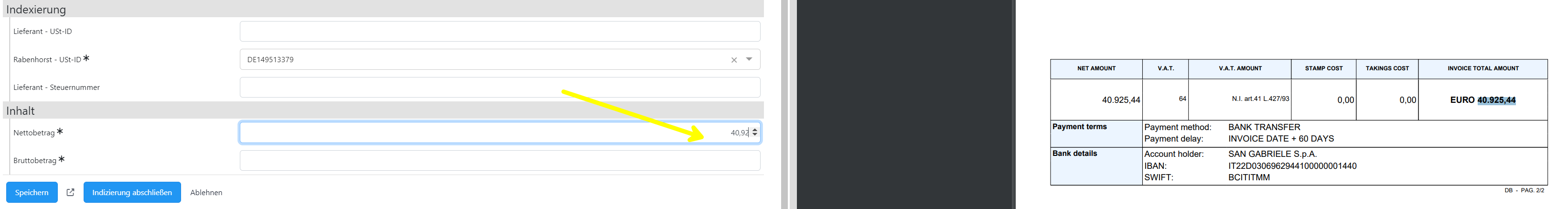 Bei Rabenhorst präferiert Copy/Paste als Eingabemethode gegenüber \"eintippen\". Vor allem in der Verarbeitung von Eingangsrechnungen werden NutzerInnen angehalten wenn möglich nur mit kopieren und einfügen zu arbeiten. Derzeit erkennen unsere 2 Brutto- und Nettofelder jedoch nicht die europäische Punktierung