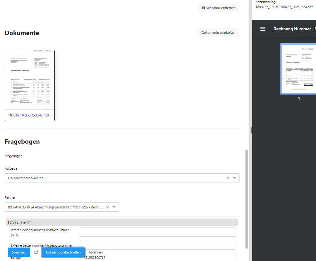 1. Ein nicht zugeordnetes Dokument öffnen: