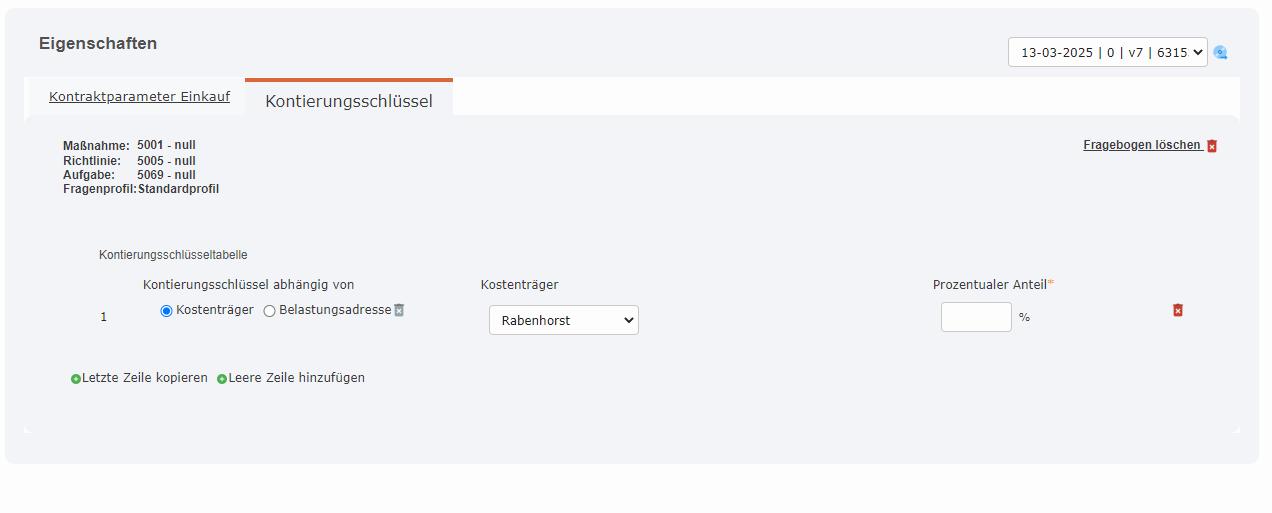 1 Position im Kontrakt (2 Unterpositionen) - Budgetprüfung + Kontraktspezifisch (nicht mehr über Fragenbogen)