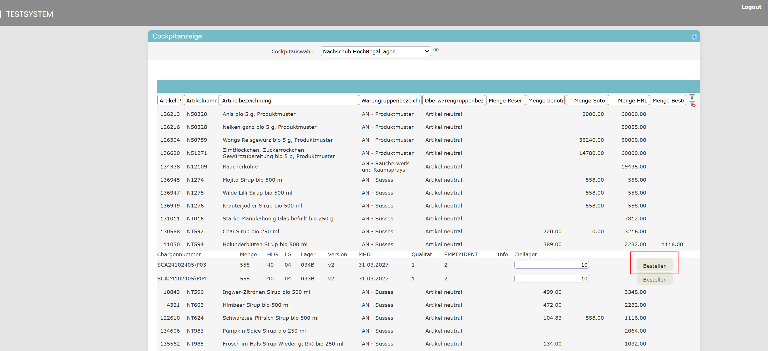Beim Query Widget kann man Chameleons über einen Button ausführen. Dabei wird im Fall von SoTo eine Dispo angelegt und Ware bestellt.