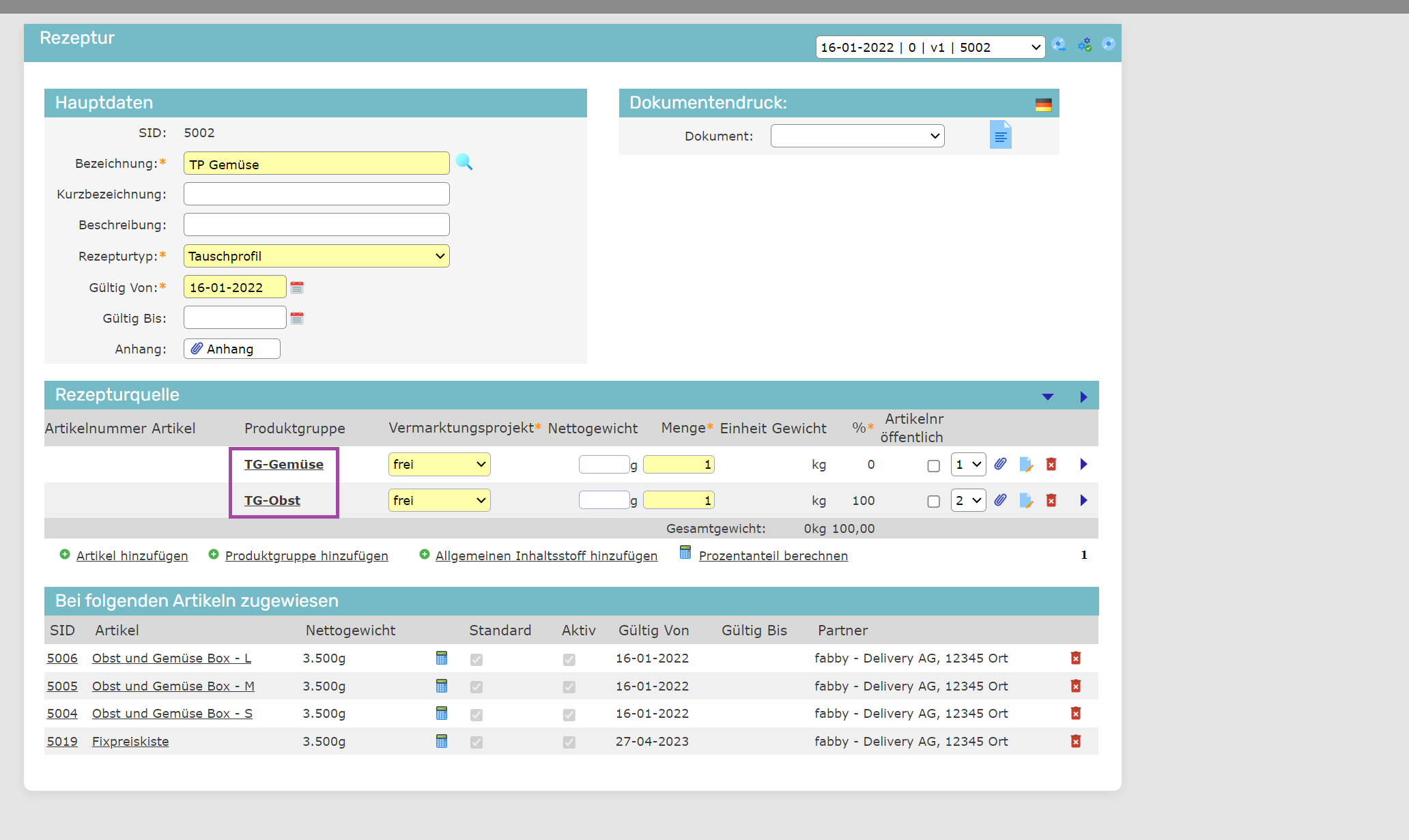 - Mit einer neuen Konfiguration ist es möglich, das Bruttogewicht berechnen zu lassen. Mit einem UI-Config kann man sich den Button zum berechnen einblenden lassen, und mit einem weiteren, kann man die Rezepttypen hinterlegen die berücksichtigt werden sollen. Falls kein Rezepttyp angegeben wird, dann wird kein spezielles berücksichtigt.