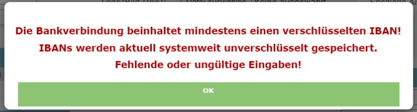- Die Abfrage wurde so angepasst, dass der IBAN immer bei der Zahlungsart 'Bankeinzug' abgefragt wird, unabhängig ob es eine Mahnsperre gibt. (Keine Konfiguration notwendig - ab Version 116)