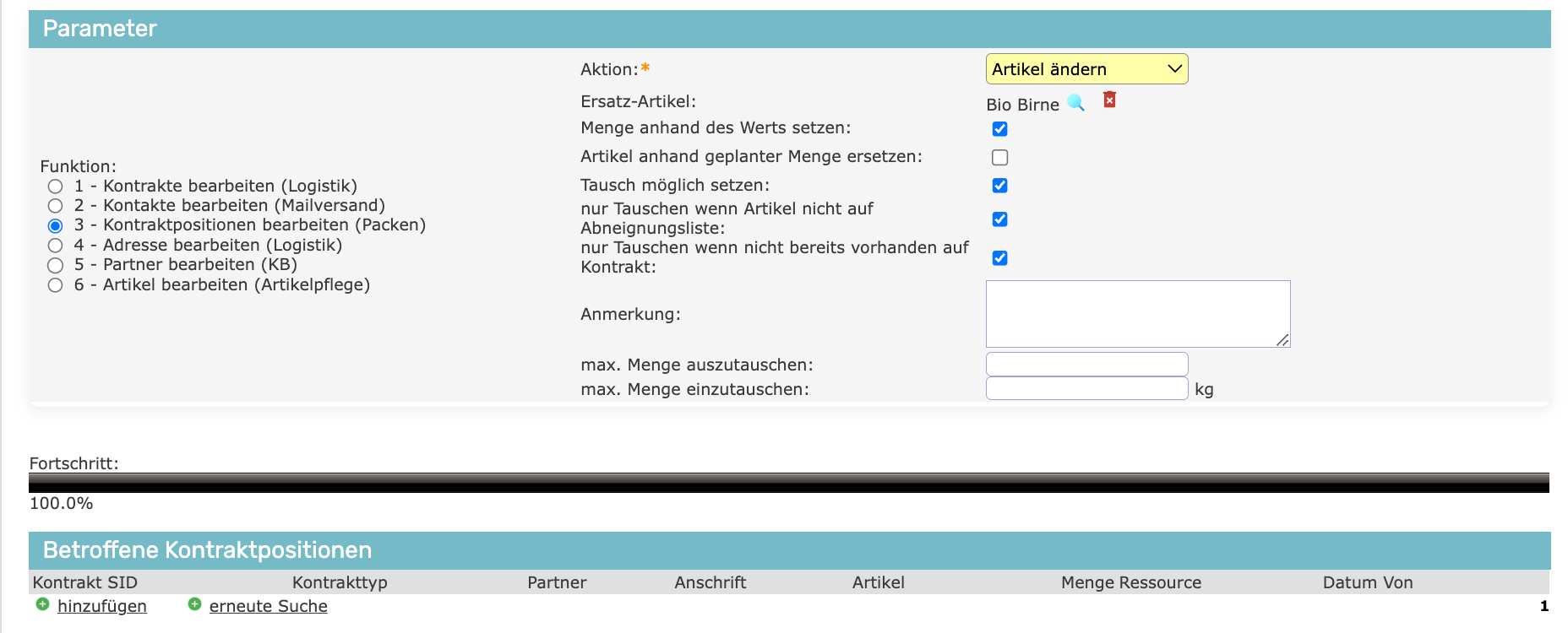 - Es gibt ab Version 116 eine Prüfung, dass der gleiche Datensatz nicht nochmal in den Auftrag geladen werden kann: