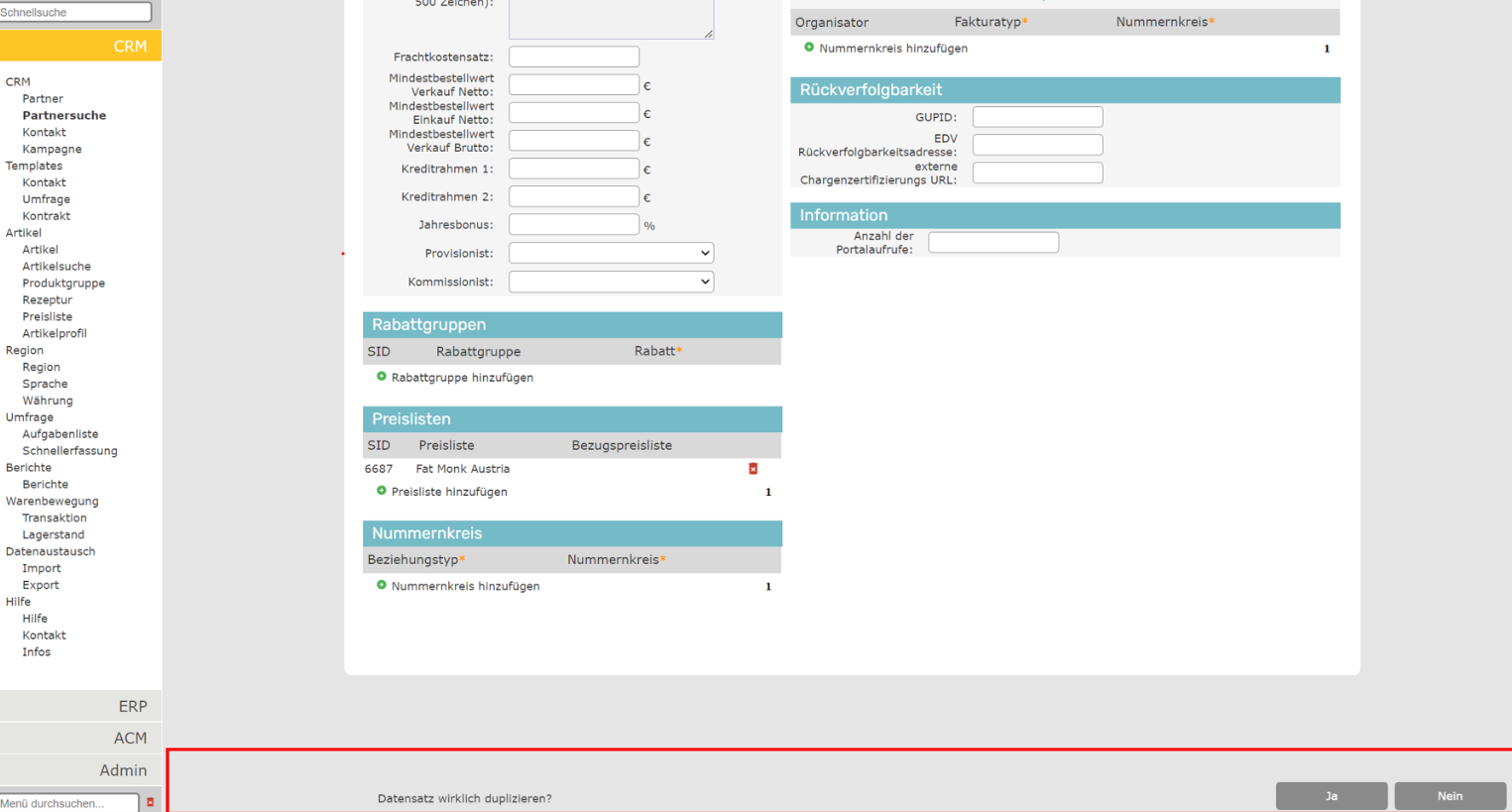 - Es kann aktiviert werden, dass der Partner die Preisliste aus der Produktgruppe übernimmt. (Konfiguration notwendig - ab Version 116)