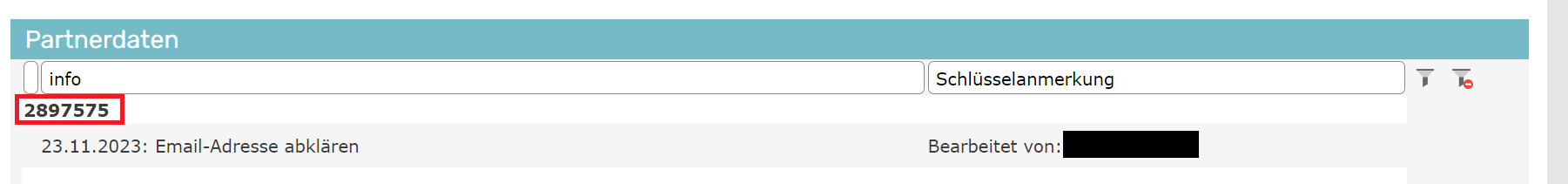 - Im Widget für Partnerdaten ist es möglich über Metadaten statt die SID (rot eingerahmt), einen alternativen Text anzuzeigen.